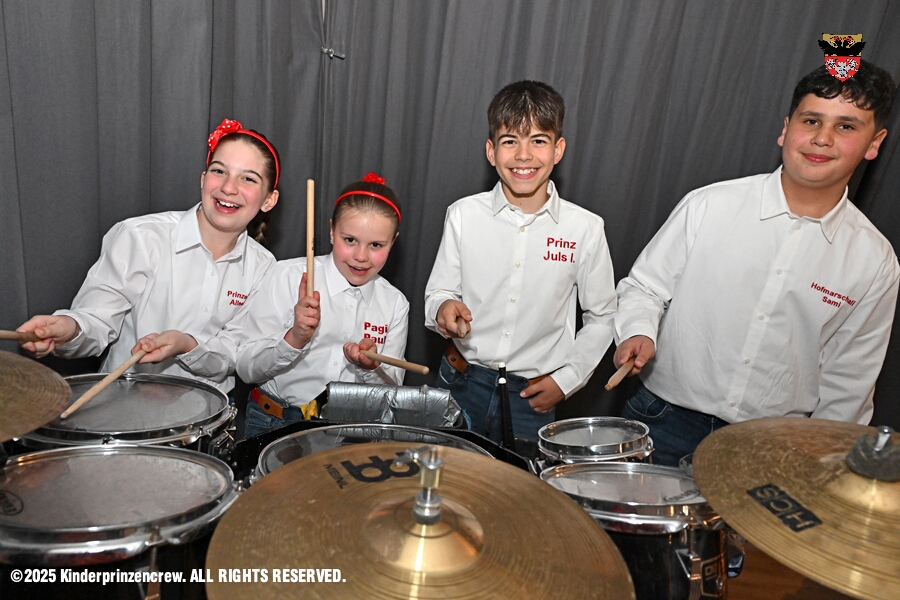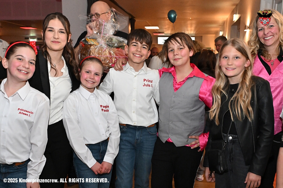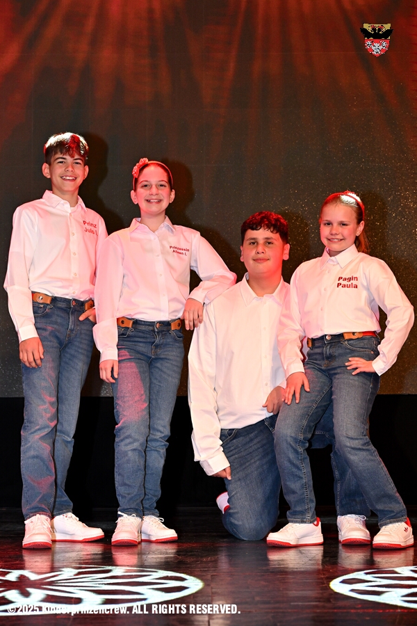 30 Prinzenwahl 2025 - Am Freitag 11. April 2025 ist endlich so weit. Vorstellung bei der Präsidentenversammlung. Nach einer kurzen Verschnaufpause dann die Erlösung, wir sind gewählt als Kinderprinzencrew der Session 2025 / 2026. Danach dann das erste mal, ohne unsere Kindergarde, nur wir vier allein, auf die Bühne im Steinhof. Wir wurden gefeiert, beschenkt und machten sehr viele Fotos. Hier auch nochmal einen herzlichen Glückwunsch an den des. Stadtprinzen Toni I. mit seiner Crew.
