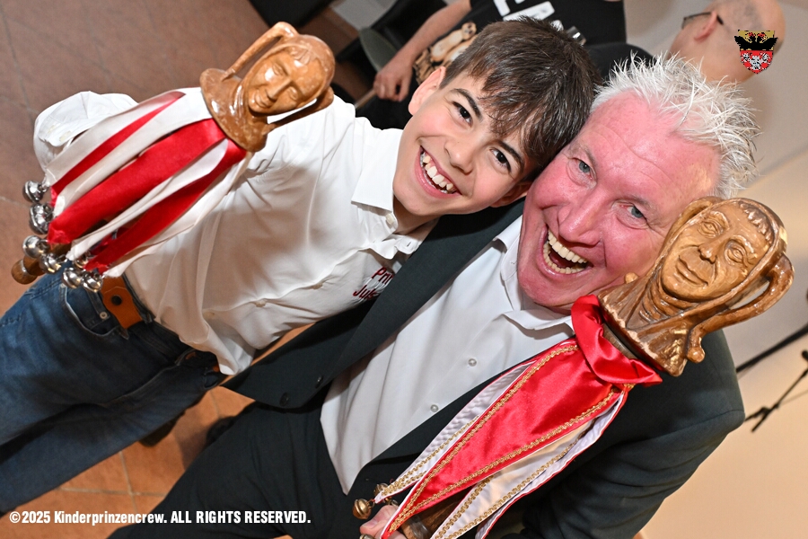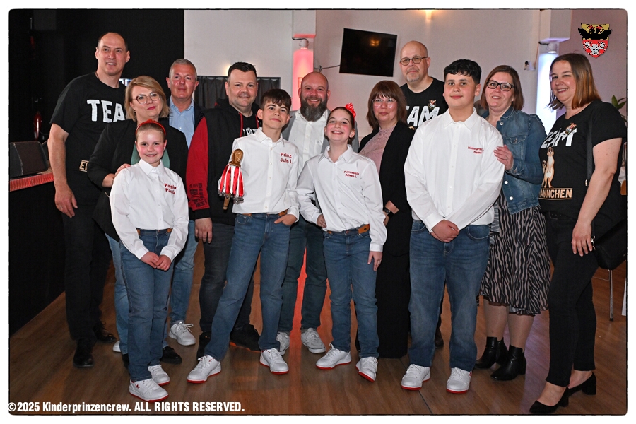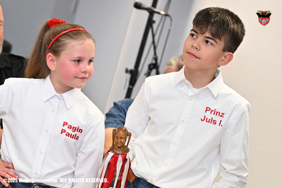 53 Prinzenwahl 2025 - Am Freitag 11. April 2025 ist endlich so weit. Vorstellung bei der Präsidentenversammlung. Nach einer kurzen Verschnaufpause dann die Erlösung, wir sind gewählt als Kinderprinzencrew der Session 2025 / 2026. Danach dann das erste mal, ohne unsere Kindergarde, nur wir vier allein, auf die Bühne im Steinhof. Wir wurden gefeiert, beschenkt und machten sehr viele Fotos. Hier auch nochmal einen herzlichen Glückwunsch an den des. Stadtprinzen Toni I. mit seiner Crew.