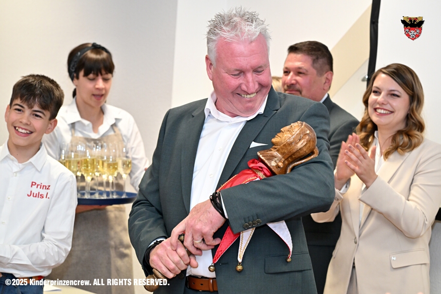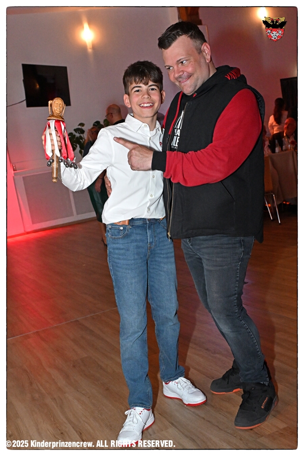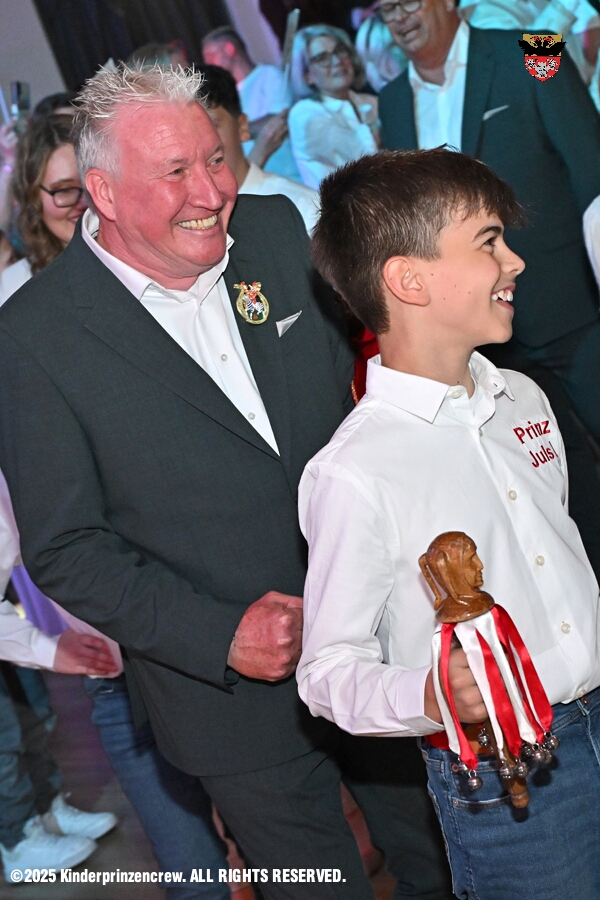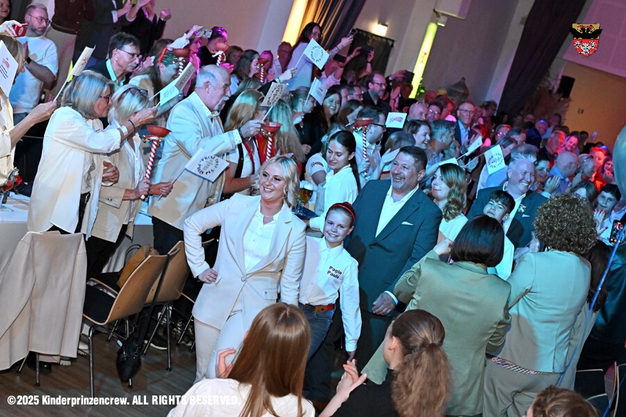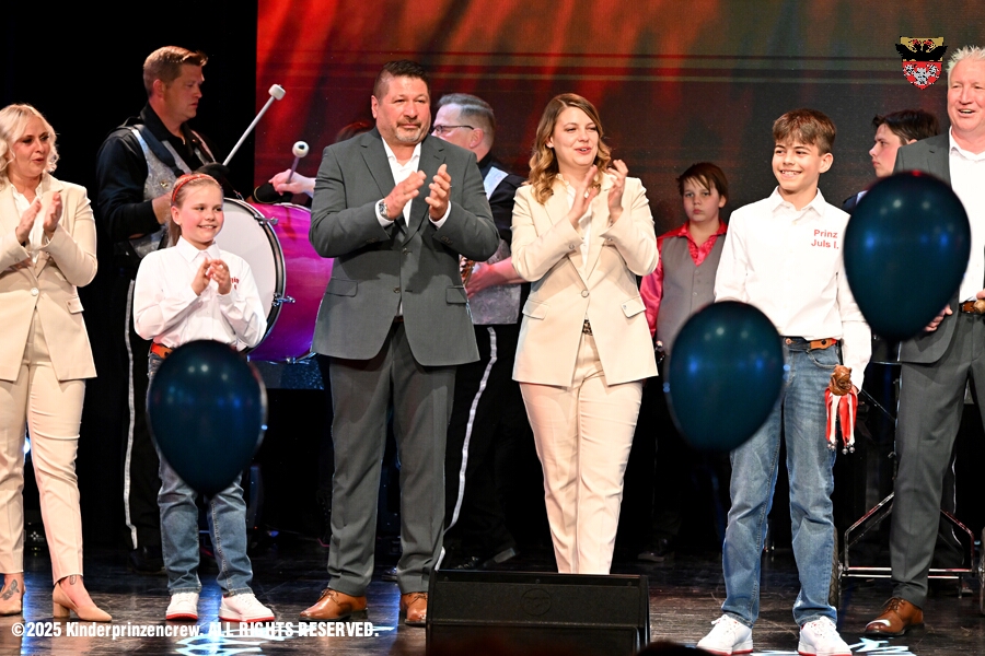 34 Prinzenwahl 2025 - Am Freitag 11. April 2025 ist endlich so weit. Vorstellung bei der Präsidentenversammlung. Nach einer kurzen Verschnaufpause dann die Erlösung, wir sind gewählt als Kinderprinzencrew der Session 2025 / 2026. Danach dann das erste mal, ohne unsere Kindergarde, nur wir vier allein, auf die Bühne im Steinhof. Wir wurden gefeiert, beschenkt und machten sehr viele Fotos. Hier auch nochmal einen herzlichen Glückwunsch an den des. Stadtprinzen Toni I. mit seiner Crew.