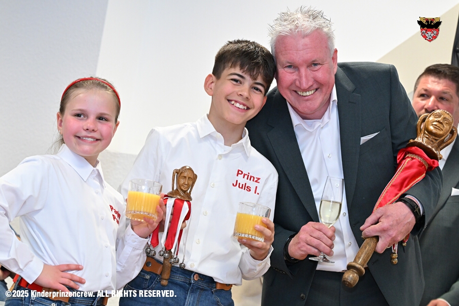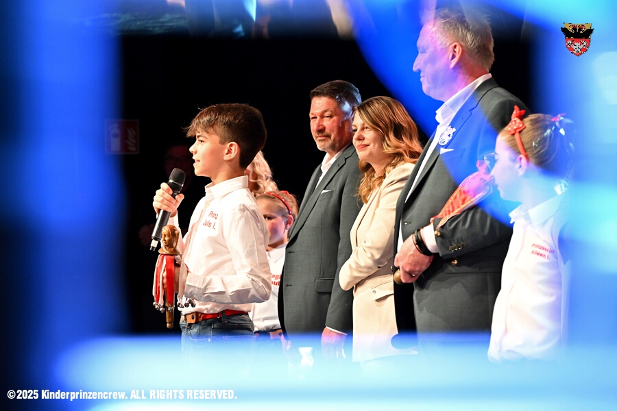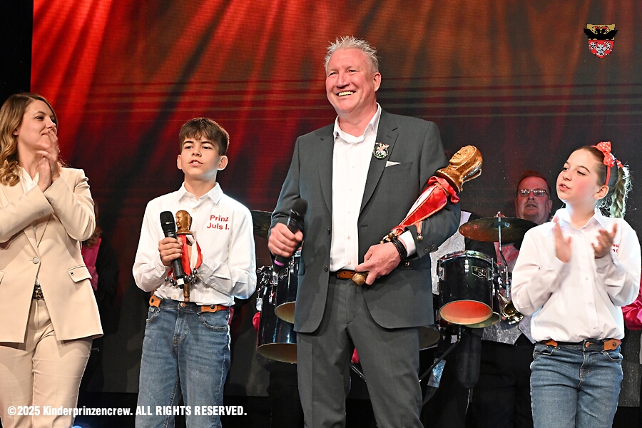 54 Prinzenwahl 2025 - Am Freitag 11. April 2025 ist endlich so weit. Vorstellung bei der Präsidentenversammlung. Nach einer kurzen Verschnaufpause dann die Erlösung, wir sind gewählt als Kinderprinzencrew der Session 2025 / 2026. Danach dann das erste mal, ohne unsere Kindergarde, nur wir vier allein, auf die Bühne im Steinhof. Wir wurden gefeiert, beschenkt und machten sehr viele Fotos. Hier auch nochmal einen herzlichen Glückwunsch an den des. Stadtprinzen Toni I. mit seiner Crew.