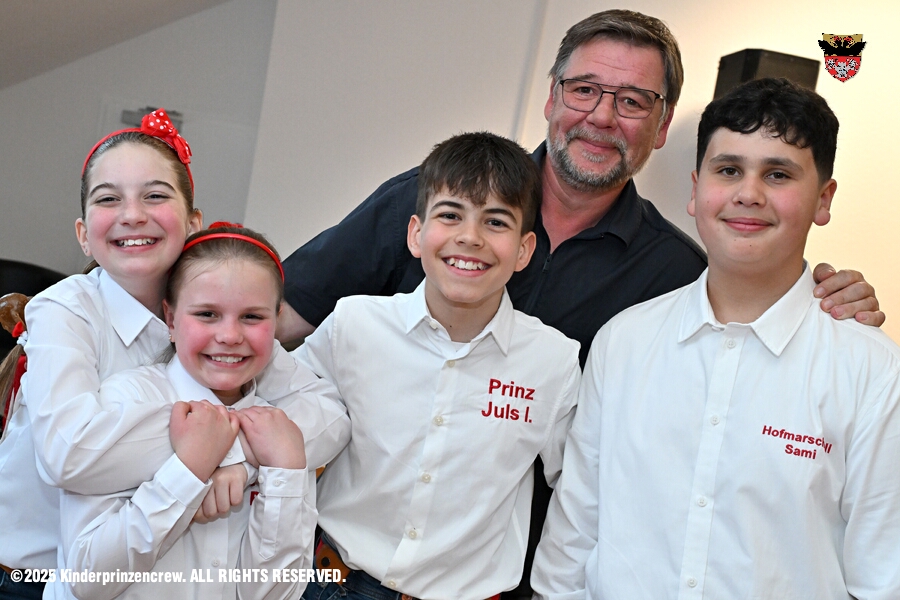 46 Prinzenwahl 2025 - Am Freitag 11. April 2025 ist endlich so weit. Vorstellung bei der Präsidentenversammlung. Nach einer kurzen Verschnaufpause dann die Erlösung, wir sind gewählt als Kinderprinzencrew der Session 2025 / 2026. Danach dann das erste mal, ohne unsere Kindergarde, nur wir vier allein, auf die Bühne im Steinhof. Wir wurden gefeiert, beschenkt und machten sehr viele Fotos. Hier auch nochmal einen herzlichen Glückwunsch an den des. Stadtprinzen Toni I. mit seiner Crew.