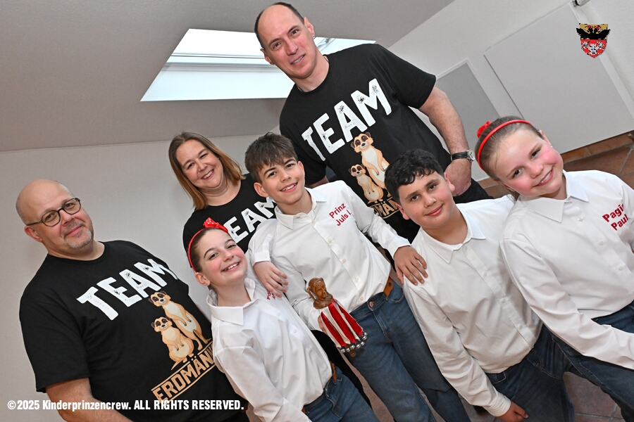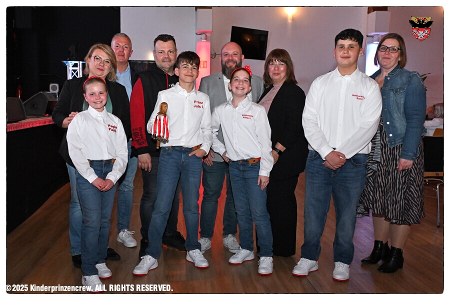 9 Prinzenwahl 2025 - Am Freitag 11. April 2025 ist endlich so weit. Vorstellung bei der Präsidentenversammlung. Nach einer kurzen Verschnaufpause dann die Erlösung, wir sind gewählt als Kinderprinzencrew der Session 2025 / 2026. Danach dann das erste mal, ohne unsere Kindergarde, nur wir vier allein, auf die Bühne im Steinhof. Wir wurden gefeiert, beschenkt und machten sehr viele Fotos. Hier auch nochmal einen herzlichen Glückwunsch an den des. Stadtprinzen Toni I. mit seiner Crew.