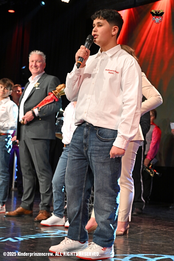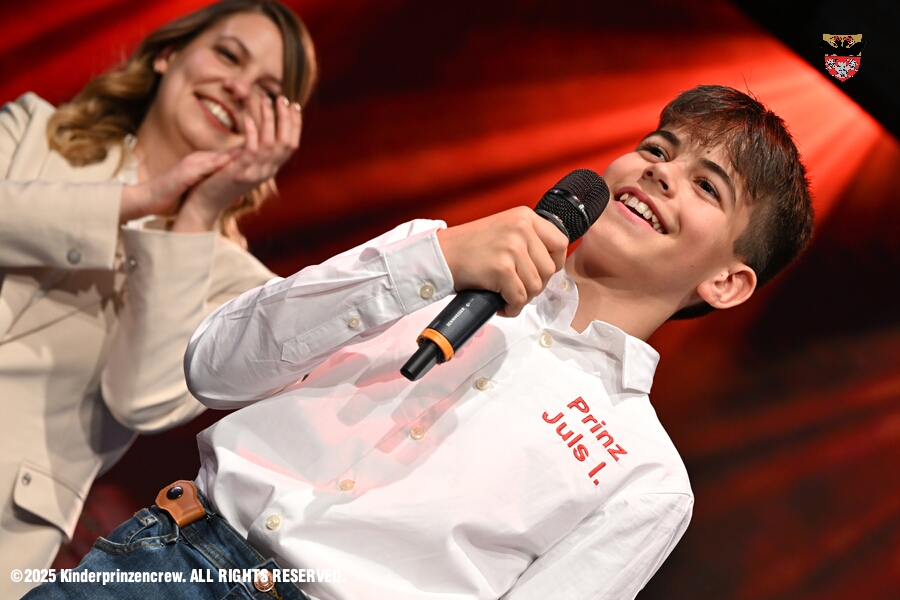 44 Prinzenwahl 2025 - Am Freitag 11. April 2025 ist endlich so weit. Vorstellung bei der Präsidentenversammlung. Nach einer kurzen Verschnaufpause dann die Erlösung, wir sind gewählt als Kinderprinzencrew der Session 2025 / 2026. Danach dann das erste mal, ohne unsere Kindergarde, nur wir vier allein, auf die Bühne im Steinhof. Wir wurden gefeiert, beschenkt und machten sehr viele Fotos. Hier auch nochmal einen herzlichen Glückwunsch an den des. Stadtprinzen Toni I. mit seiner Crew.