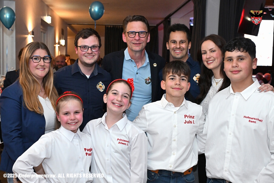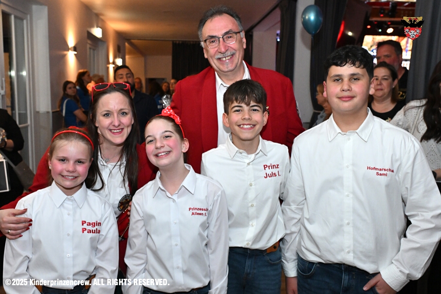 29 Prinzenwahl 2025 - Am Freitag 11. April 2025 ist endlich so weit. Vorstellung bei der Präsidentenversammlung. Nach einer kurzen Verschnaufpause dann die Erlösung, wir sind gewählt als Kinderprinzencrew der Session 2025 / 2026. Danach dann das erste mal, ohne unsere Kindergarde, nur wir vier allein, auf die Bühne im Steinhof. Wir wurden gefeiert, beschenkt und machten sehr viele Fotos. Hier auch nochmal einen herzlichen Glückwunsch an den des. Stadtprinzen Toni I. mit seiner Crew.