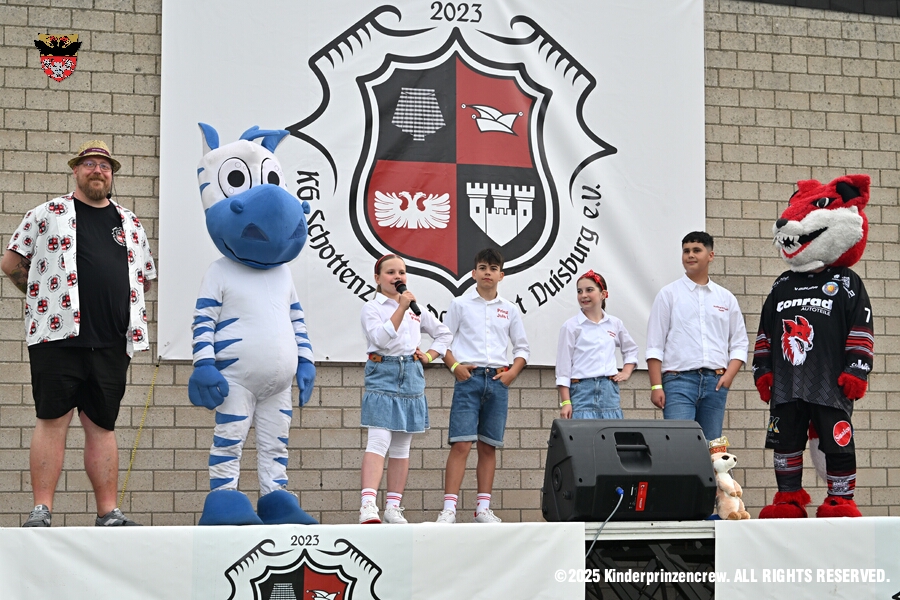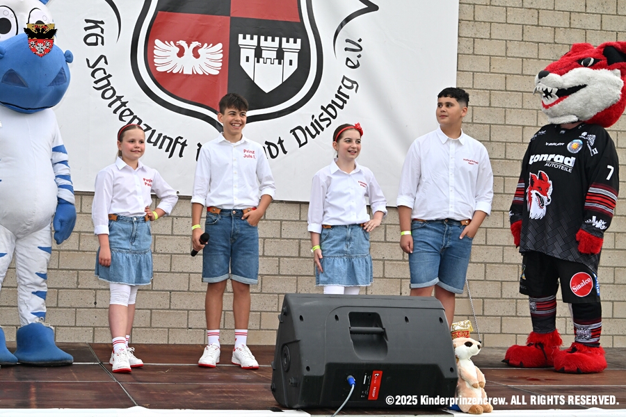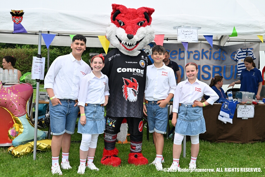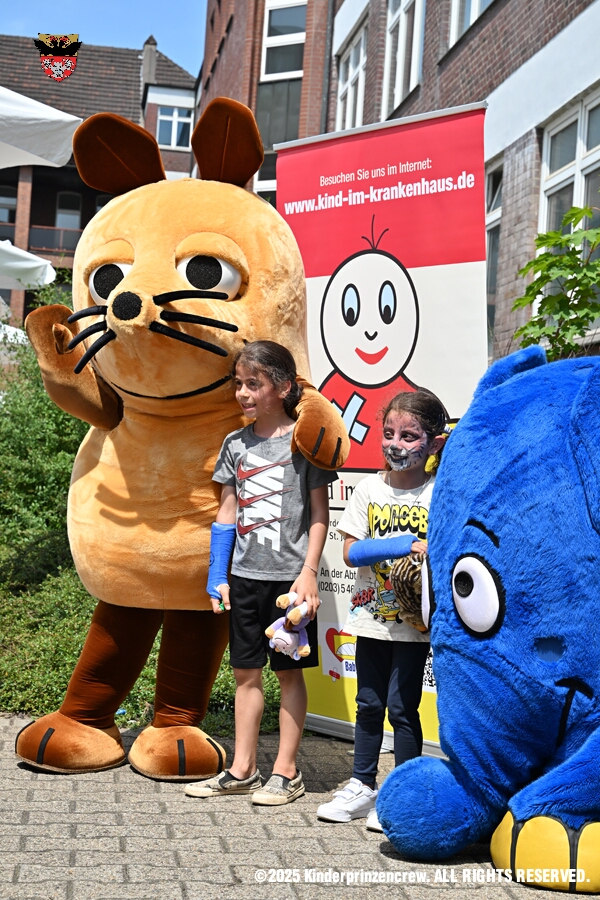 4 Kinderfest & Sommerfest - Unser erstes Ziel war in Hamborn das Helios St. Johannes Klinikum. Ein großes Kinderfest veranstaltete der Förderverein KiK – Kind im Krankenhaus - anlässlich seines 30jährigen Bestehens im Klinikgarten. Der zweite Termin war dann in Bissingheim auf der Sportanlage des ETUS Bissingheim. Wie schon im letzten Jahr fand dort das Sommerfest der KG Schottenzunft Duisburg statt. Zum letzten Termin, Sommerfest der Grafschafter Funken in Moers, wurde es ein wenig feucht von Oben. Aber kein Problem, wir standen unter „Schirmherrschaft“ von Katrin und Jörg.