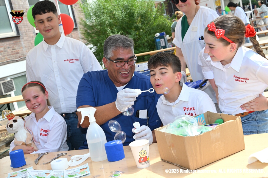 6 Kinderfest & Sommerfest - Unser erstes Ziel war in Hamborn das Helios St. Johannes Klinikum. Ein großes Kinderfest veranstaltete der Förderverein KiK – Kind im Krankenhaus - anlässlich seines 30jährigen Bestehens im Klinikgarten. Der zweite Termin war dann in Bissingheim auf der Sportanlage des ETUS Bissingheim. Wie schon im letzten Jahr fand dort das Sommerfest der KG Schottenzunft Duisburg statt. Zum letzten Termin, Sommerfest der Grafschafter Funken in Moers, wurde es ein wenig feucht von Oben. Aber kein Problem, wir standen unter „Schirmherrschaft“ von Katrin und Jörg.