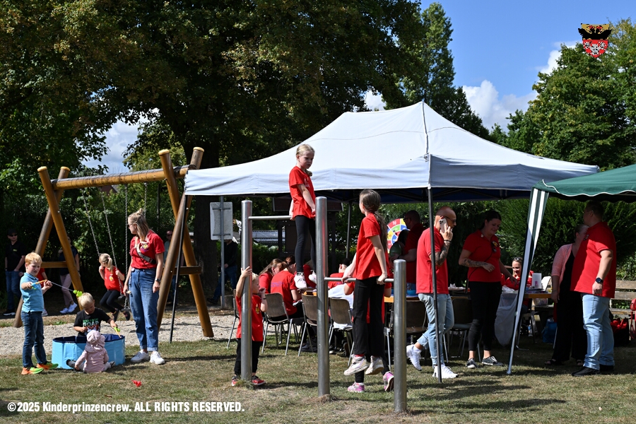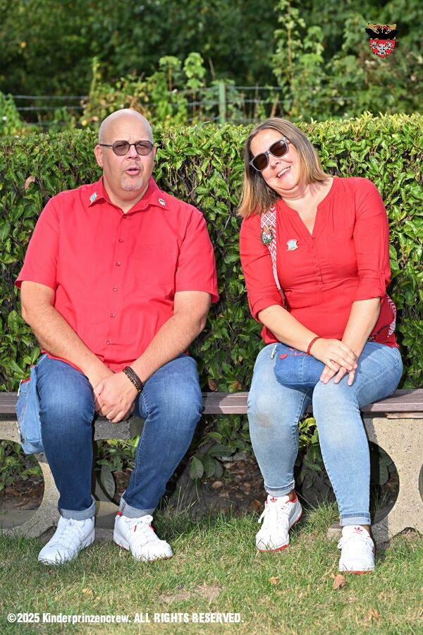 25 Tour-Tag 30. August - Gleich vier Sommerfeste standen auf dem Programm. Begonnen haben wir im Süden Duisburgs, natürlich bei der KG Sonniger-Süden. Dort starteten wir auch endlich mit dem Verkauf unserer Pins. Das nächste Ziel lag in Meiderich, das „Garde-Grillen“ der Duisburger Prinzengarde. Ein kurzer Besuch beim Kinderfest der KG Rote Funken lag auf dem Weg in den Westen Duisburgs zur 1. KG Baerl.
