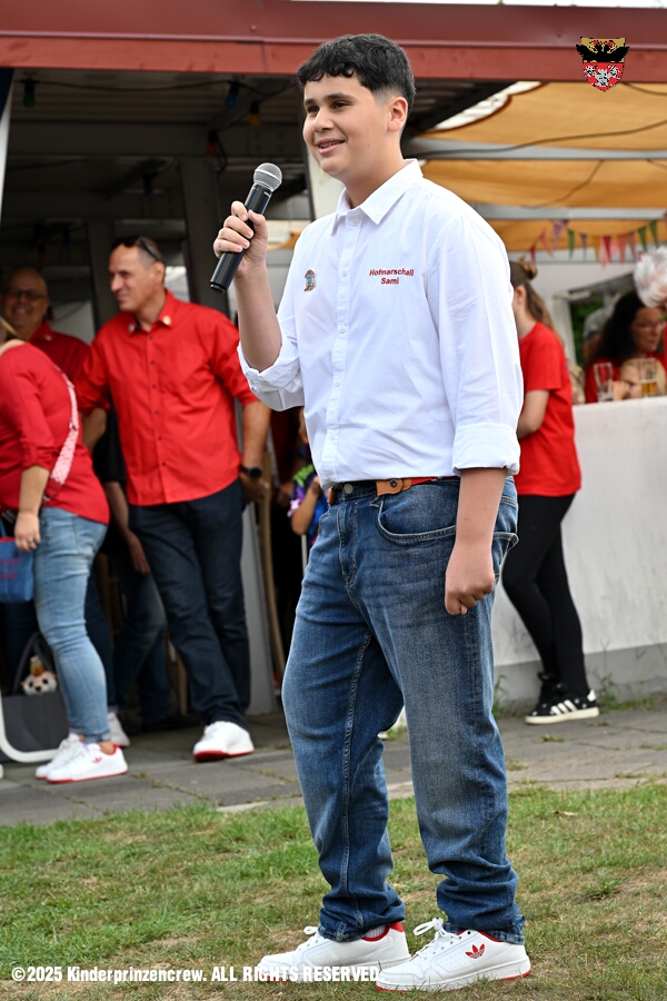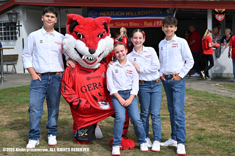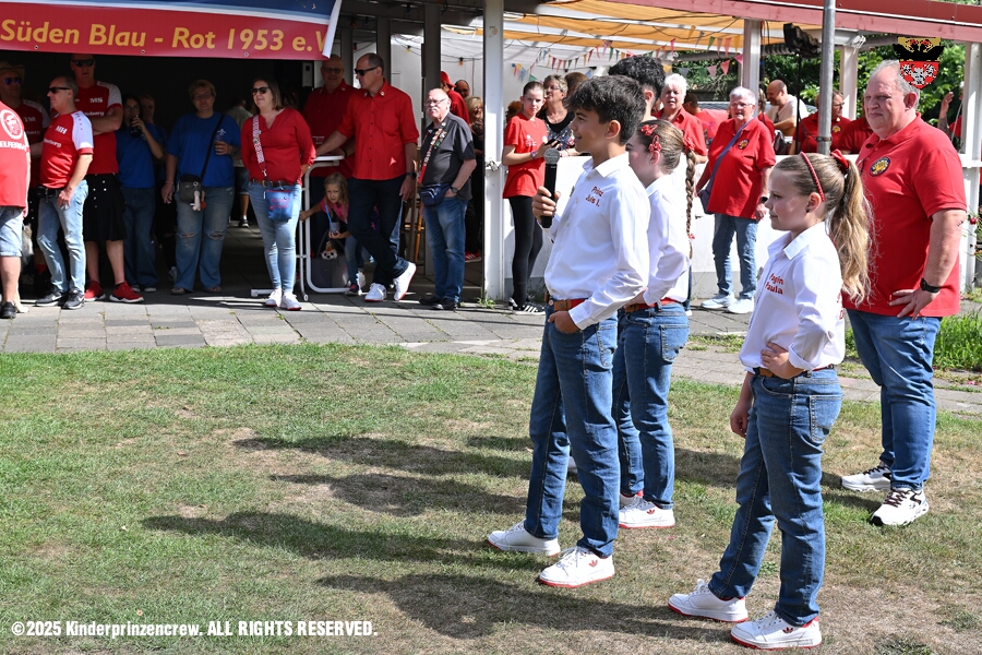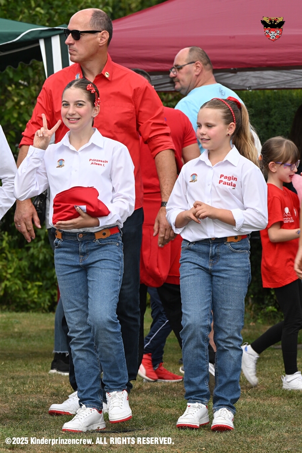 Gleich vier Sommerfeste standen auf dem Programm. Begonnen haben wir im Süden Duisburgs, natürlich bei der KG Sonniger-Süden. Dort starteten wir auch endlich mit dem Verkauf unserer Pins. Das nächste Ziel lag in Meiderich, das „Garde-Grillen“ der Duisburger Prinzengarde. Ein kurzer Besuch beim Kinderfest der KG Rote Funken lag auf dem Weg in den Westen Duisburgs zur 1. KG Baerl.