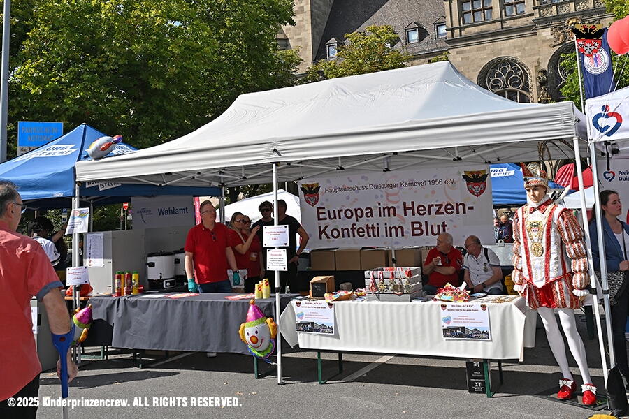 Zwei Termine hatten wir an diesem sommerlichen Samstag. Der Erste war auf dem Burgplatz. Vor dem Rathaus fand der „Tag der Demokratie“ statt. Eine Veranstaltung der Stadt Duisburg, dem HDK unter Mitwirkung angeschlossener Vereinen und diversen Organisationen aus der Stadt. Danach ging es zur Platzanlage des TUS Viktoria 06 in Buchholz zum Benefiz-Spiel gegen die Traditionsmannschaft von Schalke 04.