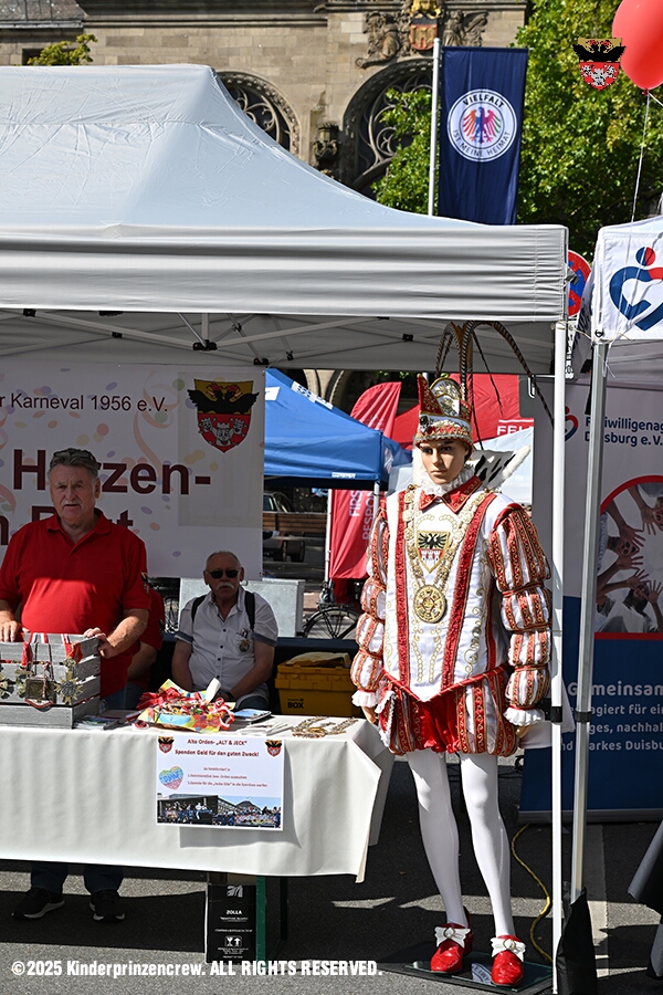 11 Der 6. September - Zwei Termine hatten wir an diesem sommerlichen Samstag. Der Erste war auf dem Burgplatz. Vor dem Rathaus fand der „Tag der Demokratie“ statt. Eine Veranstaltung der Stadt Duisburg, dem HDK unter Mitwirkung angeschlossener Vereinen und diversen Organisationen aus der Stadt. Danach ging es zur Platzanlage des TUS Viktoria 06 in Buchholz zum Benefiz-Spiel gegen die Traditionsmannschaft von Schalke 04.