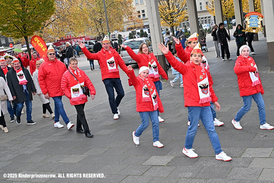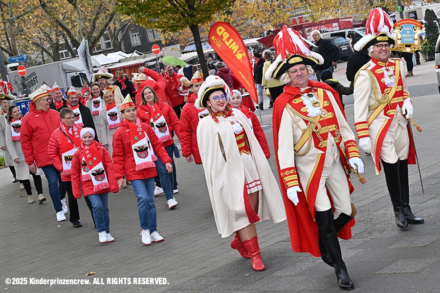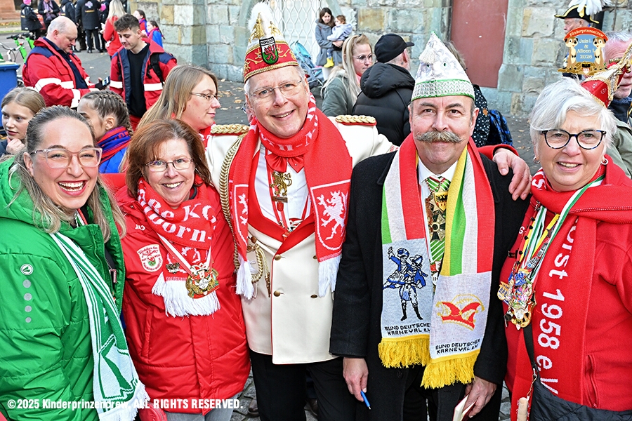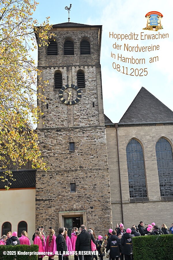 25 Langer Samstag, der 8. November - Am Samstagmorgen stand in der Abteikirche der karnevalistische Gottesdienst in Hamborm an. Mit eine kleinen Umzug ging’ s zum dortigen Rathaus. Karnevalsauftakt der Nordvereine. Am frühen Abend dann in Laar zu Rot-Goldenen KG und später zur Party zum Hoppeditzerwachen bei der KG Sonniger Süden.