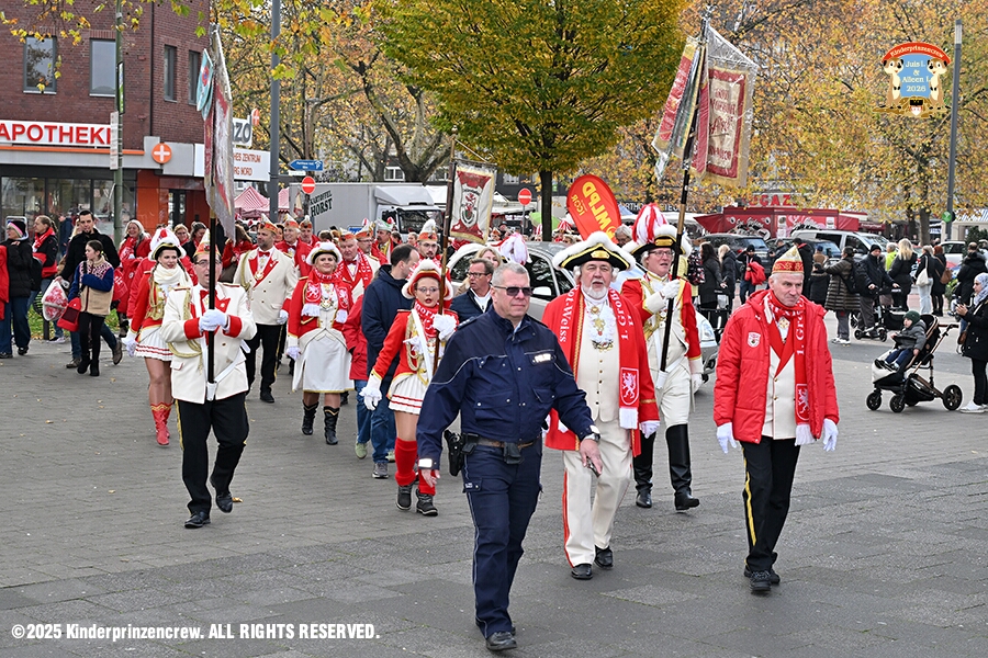 24 Langer Samstag, der 8. November - Am Samstagmorgen stand in der Abteikirche der karnevalistische Gottesdienst in Hamborm an. Mit eine kleinen Umzug ging’ s zum dortigen Rathaus. Karnevalsauftakt der Nordvereine. Am frühen Abend dann in Laar zu Rot-Goldenen KG und später zur Party zum Hoppeditzerwachen bei der KG Sonniger Süden.
