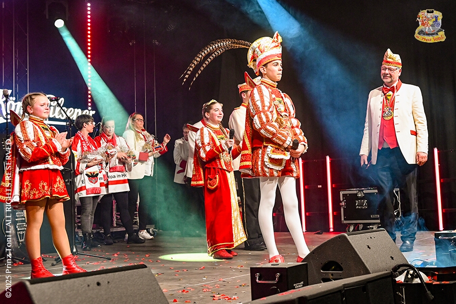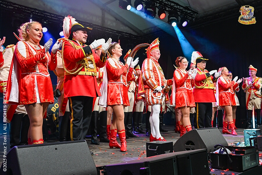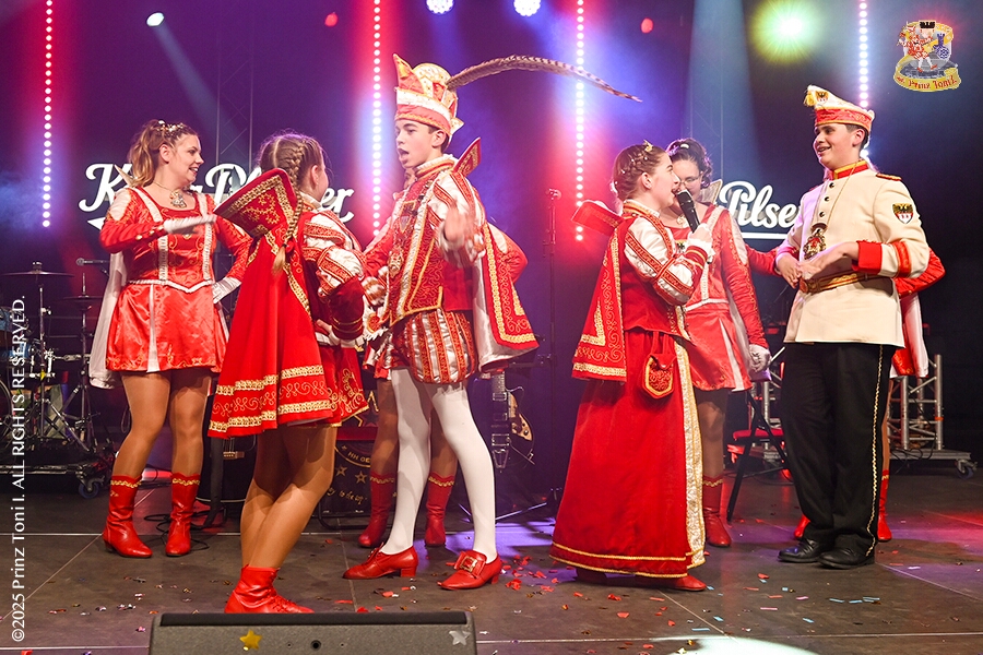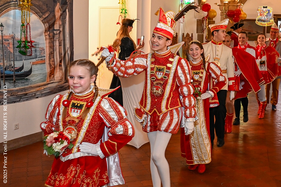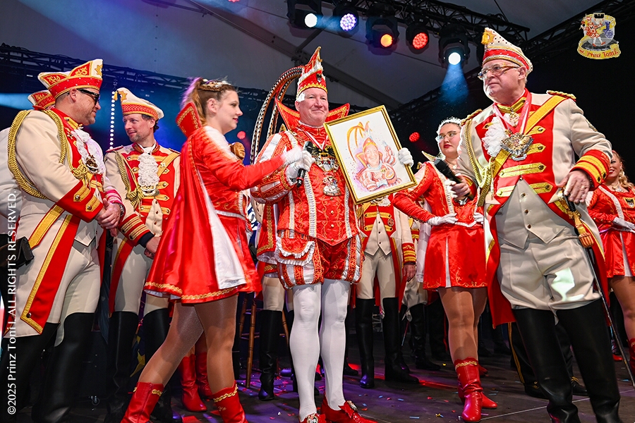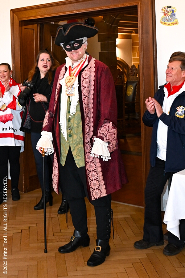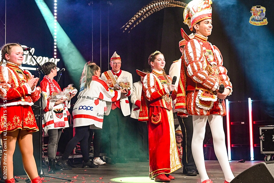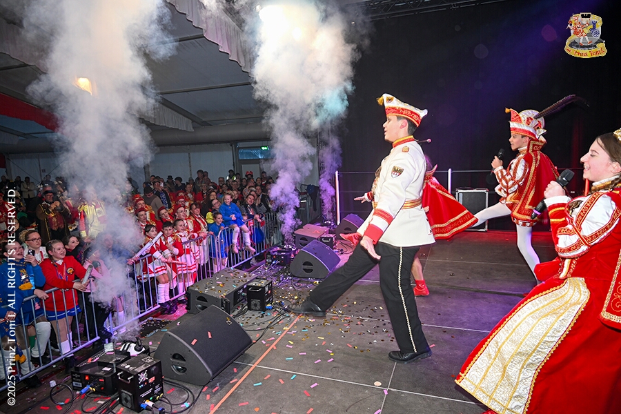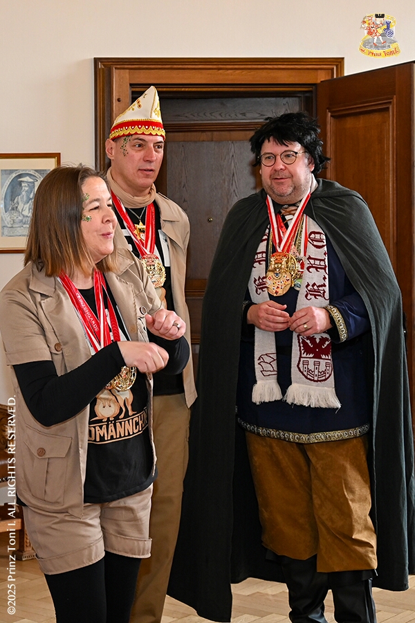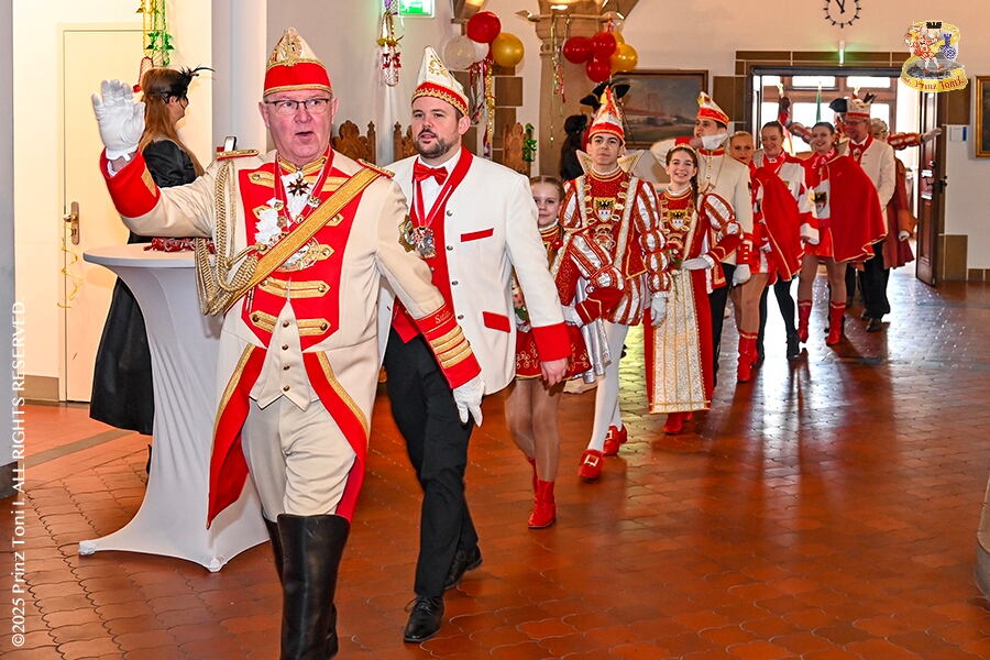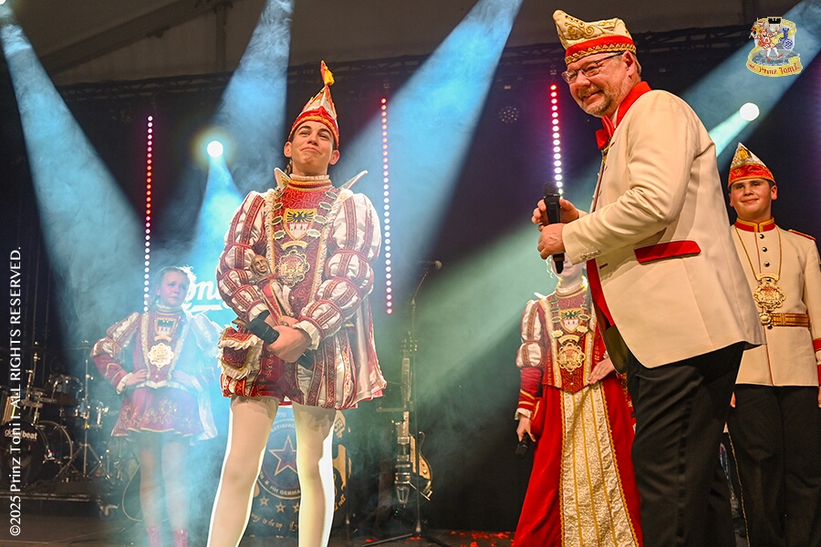25 Rosenmontag 2026 - Es war eigentlich ein toller Tag, wenn nur das Wetter mitgespielt hätte. Beim Wecken von Prinz Toni I. vor dem WYNDHAM Hotel Duisburger Hof war es schon recht ungemütlich. Danach dann ein paar warme Stunden in unserem Rat, beim Prinzenwecken mit OB Sören Link. Pünktlich zum Start des Rosenmontagszugs geht es los mit dem Regen, bis auf kurze Momente hielt er an bis zum Ende des Zuges. Nachdem sich Alle im König Pilsener Festzelt auf gewärmt hatten, kamen auf der Bühne die Verabschiedung von uns, der Kinderprinzencrew 2026, und Prinz Toni I.