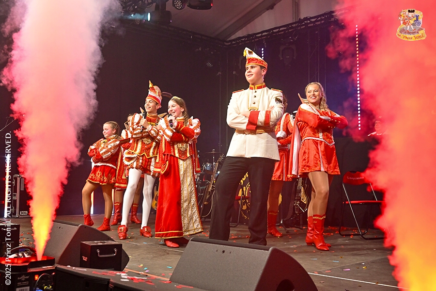 69 KG Rot-Gold Laar im Ewaldi-Haus - Die KG Rot-Gold Laar hatte am 6. Mai zum Frühlingsfest eingeladen. Wir als designierte Kinderprinzencrew 2027 sind gern der Einladung gefolgt. Nach Leckereien vom Grill, sowie Kaffee und Kuchen startete ab ca. 19 Uhr die Frühlingsparty.