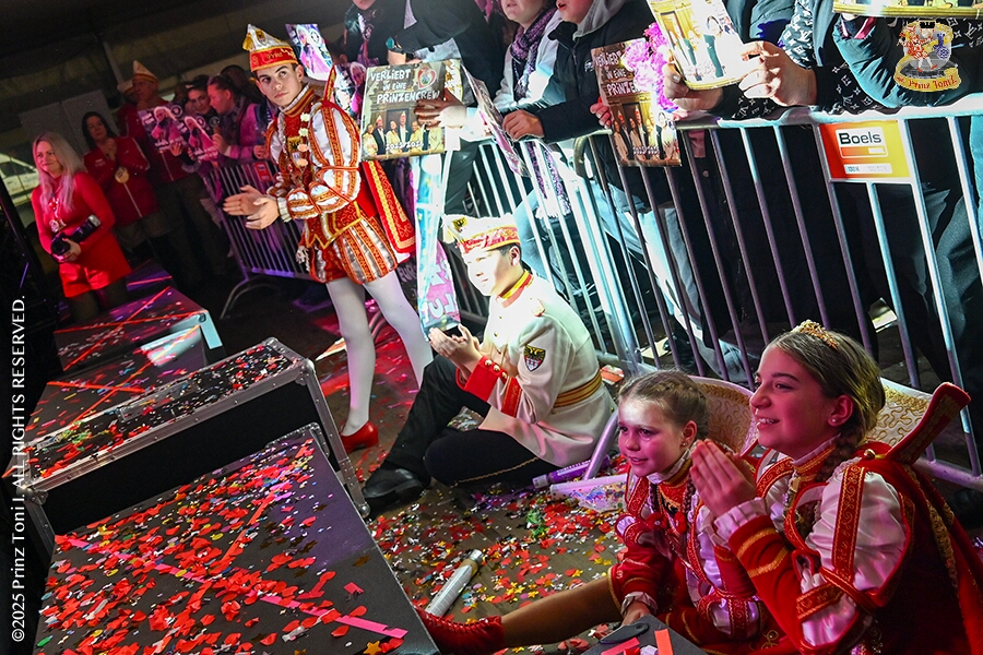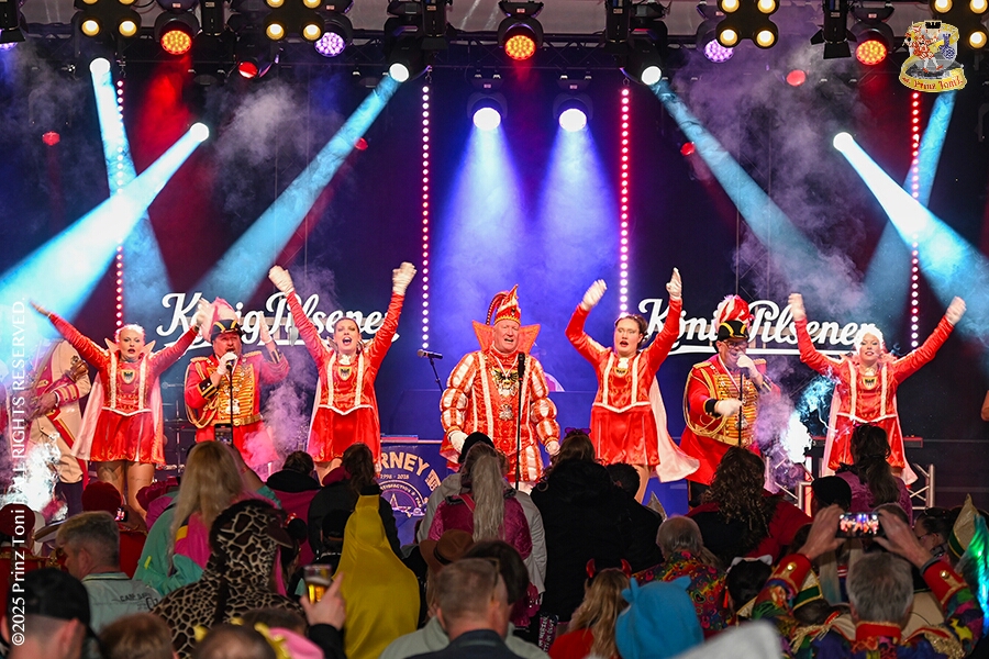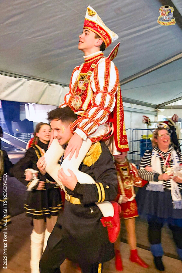 Es war eigentlich ein toller Tag, wenn nur das Wetter mitgespielt hätte. Beim Wecken von Prinz Toni I. vor dem WYNDHAM Hotel Duisburger Hof war es schon recht ungemütlich. Danach dann ein paar warme Stunden in unserem Rat, beim Prinzenwecken mit OB Sören Link. Pünktlich zum Start des Rosenmontagszugs geht es los mit dem Regen, bis auf kurze Momente hielt er an bis zum Ende des Zuges. Nachdem sich Alle im König Pilsener Festzelt auf gewärmt hatten, kamen auf der Bühne die Verabschiedung von uns, der Kinderprinzencrew 2026, und Prinz Toni I.